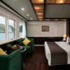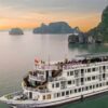 12.30: Check-in aboard with welcom cocktail from crew member while manager introduce the safety briefing and the boat cruising foward to Halong Bay